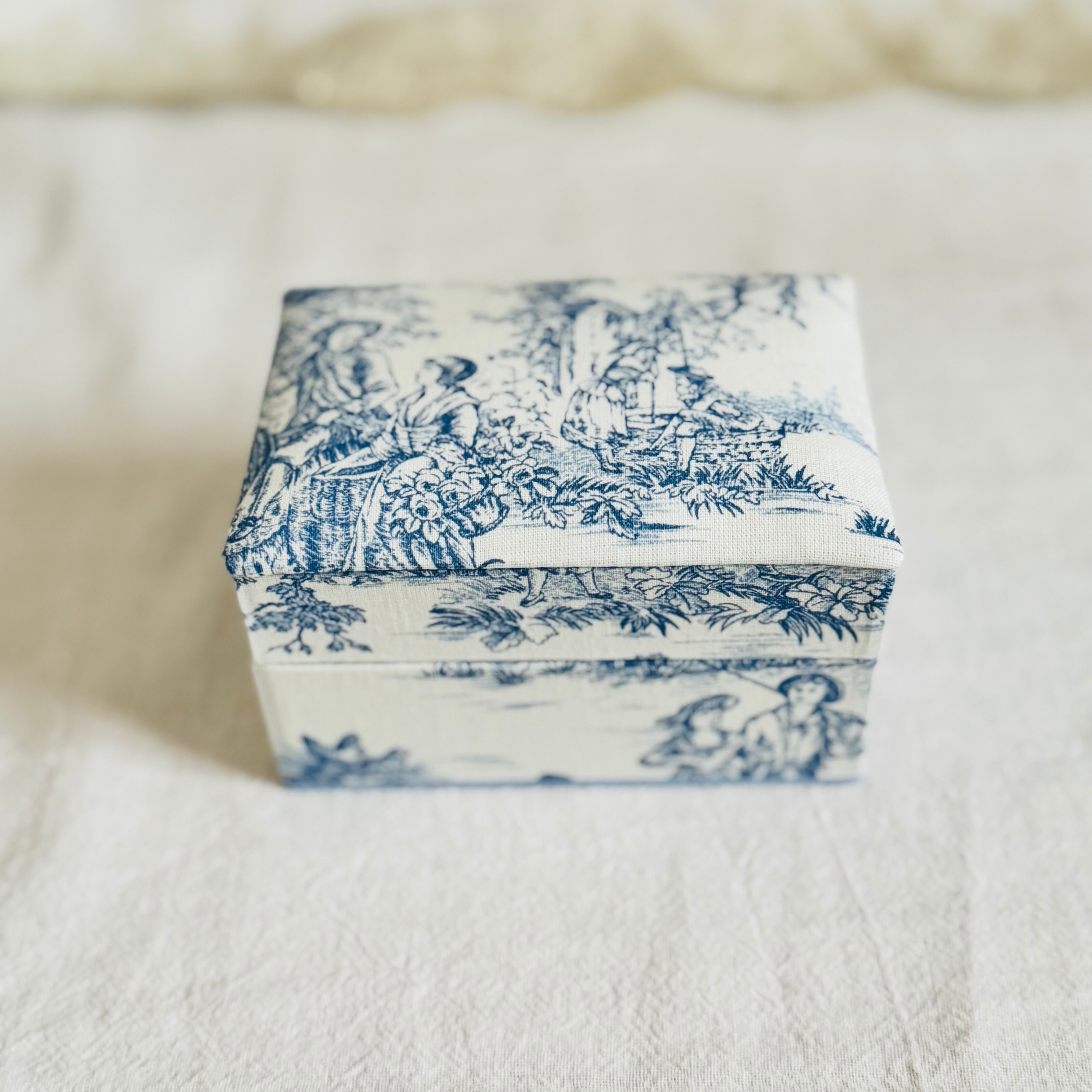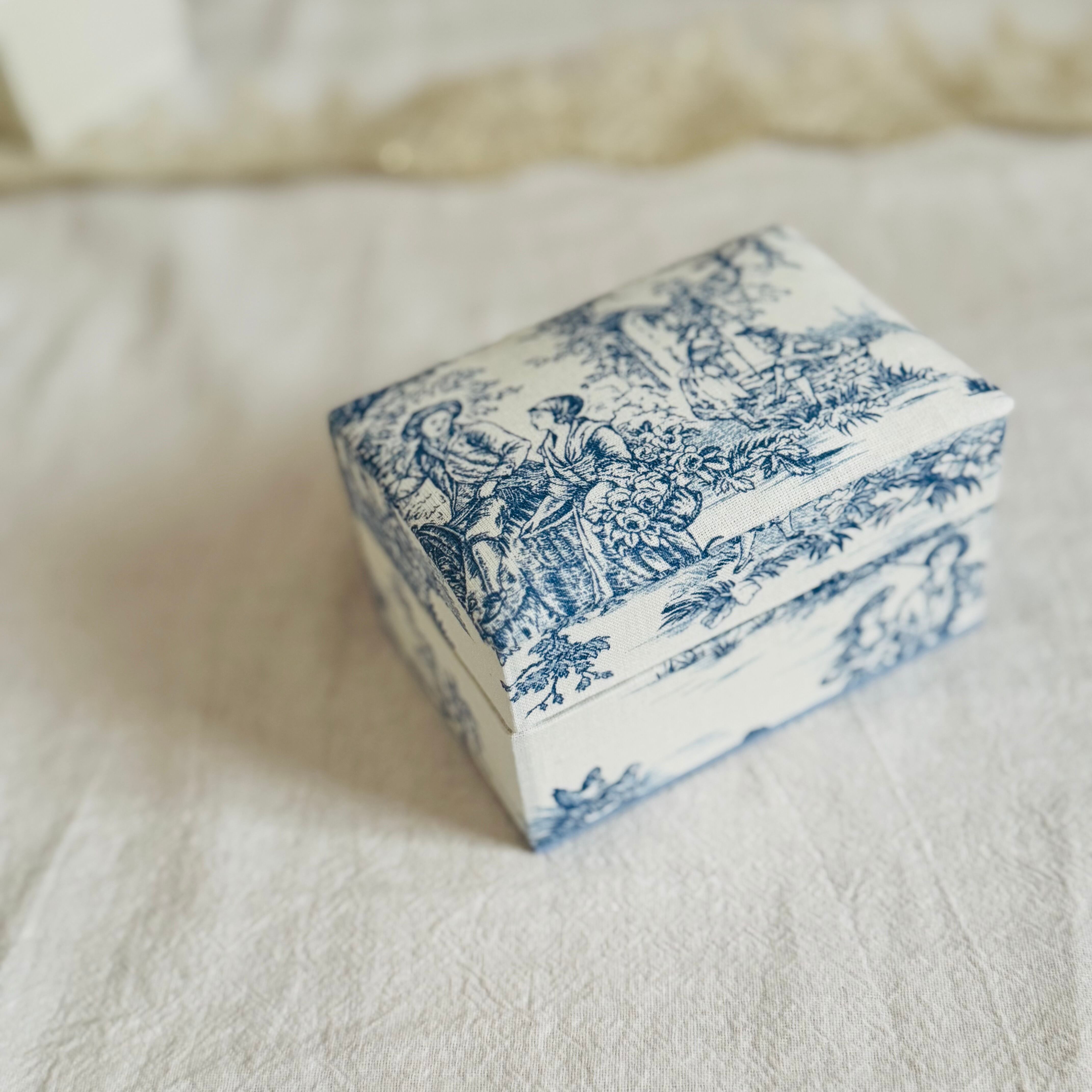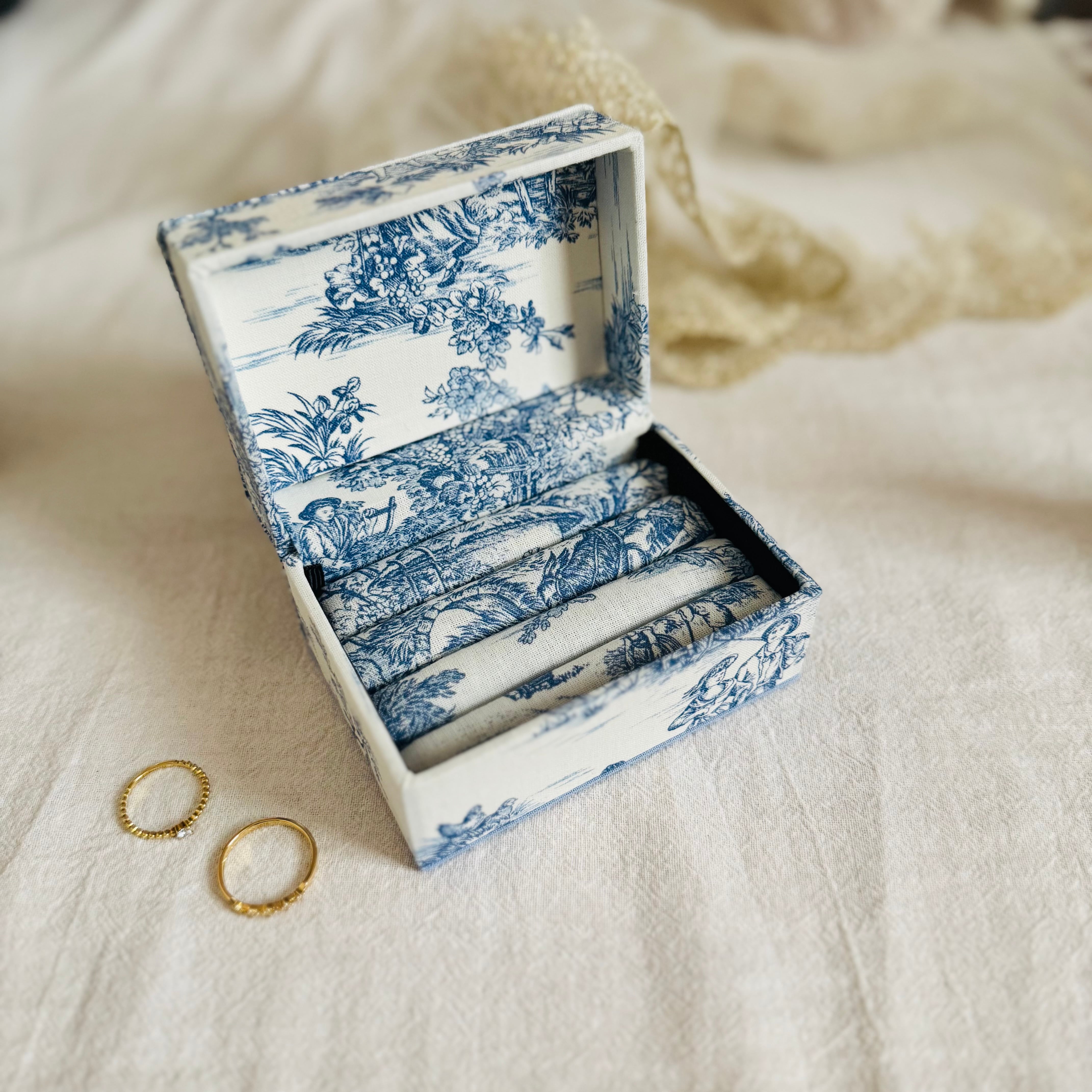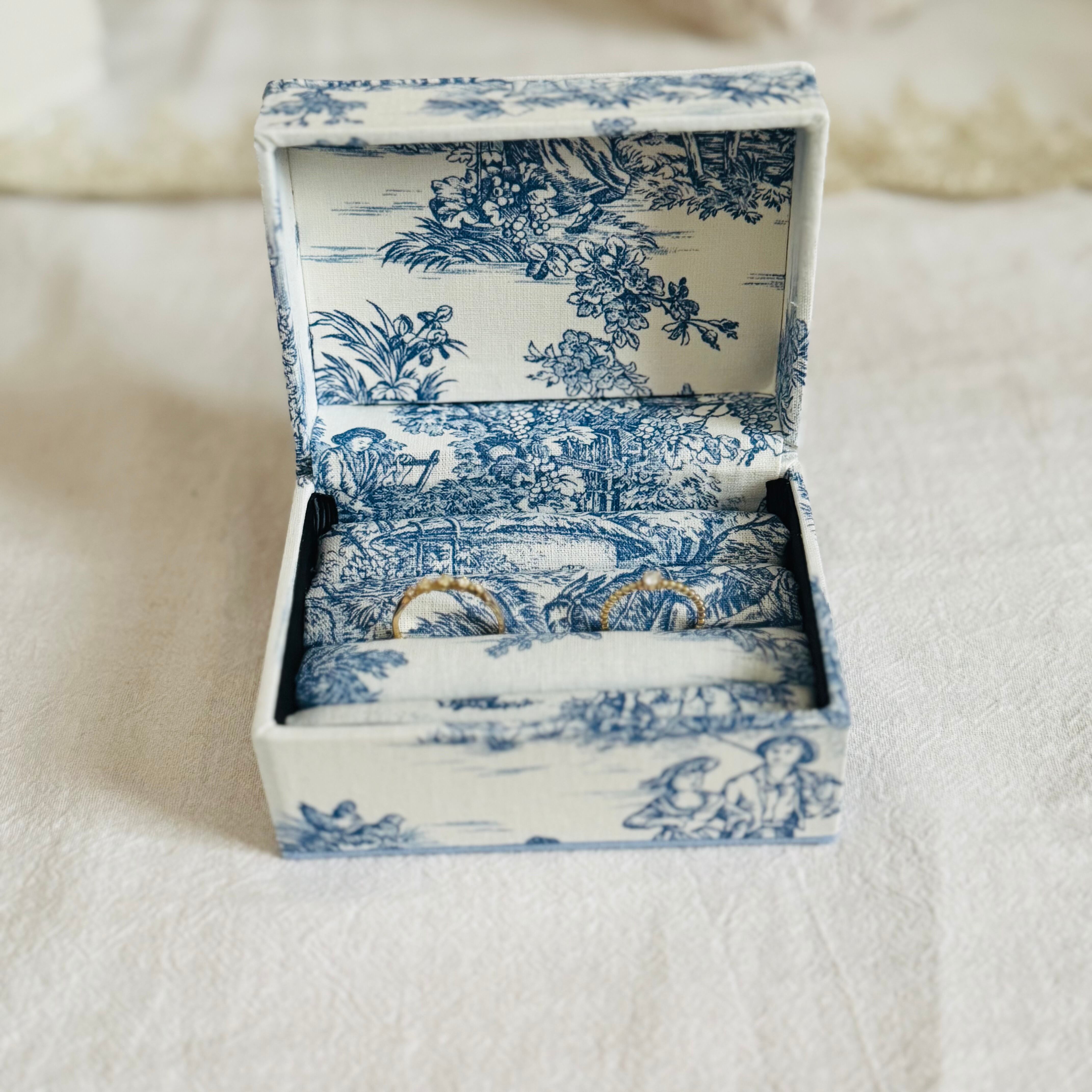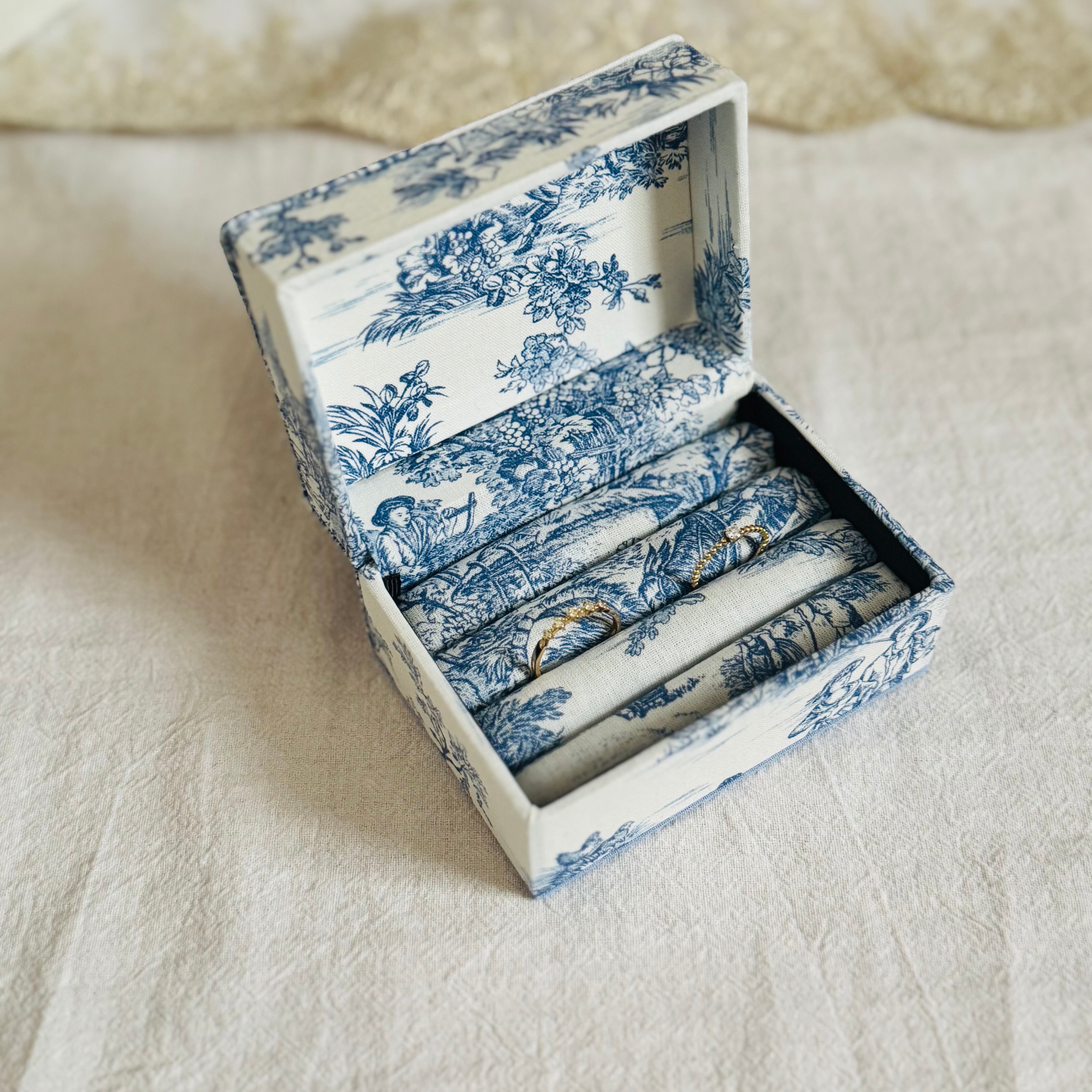 洗練された美しさを持つトワルドジュイのリングケース。歴史あるフランスのテキスタイルデザインを基にしたこのケースは、優雅な模様が特徴で、どんなジュエリーも引き立てます。高級感あふれる素材と丁寧な仕立てにより、リングを安全に収納できるだけでなく、インテリアとしても素敵なアクセントになります。特別な日の贈り物としても、自分へのご褒美としても最適です。デザインはモダンながらもクラシックな美しさを兼ね備えており、幅広いスタイルにマッチします。