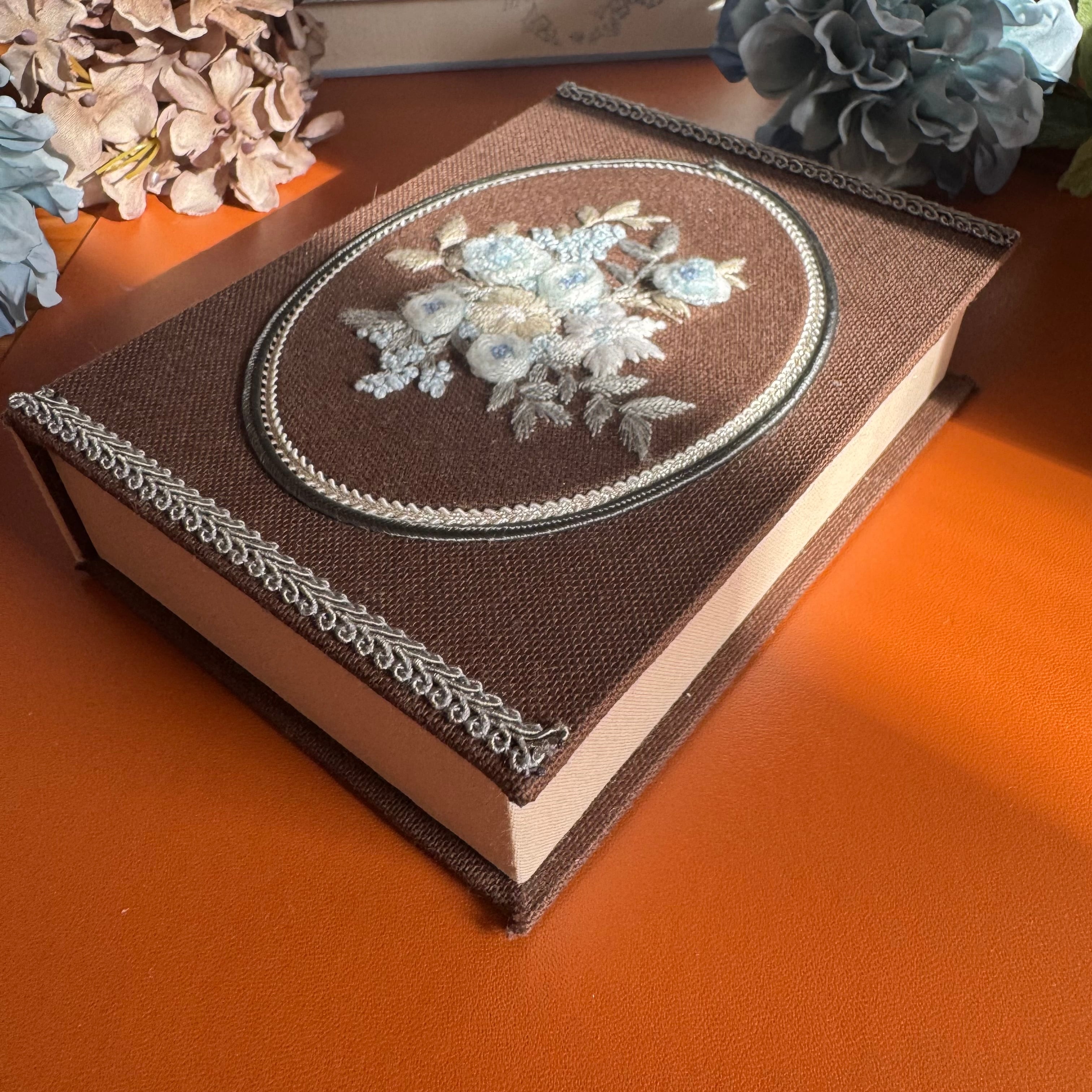 華やかな刺繍が施されたアクセサリーケースは、まるで本のようなデザインが特徴です。美しい刺繍は、あなたの大切なジュエリーをおしゃれに収納できるだけでなく、お部屋のインテリアにも温かみを与えます。このケースは、特別な日のギフトや自分へのご褒美としても最適なアイテムです。
