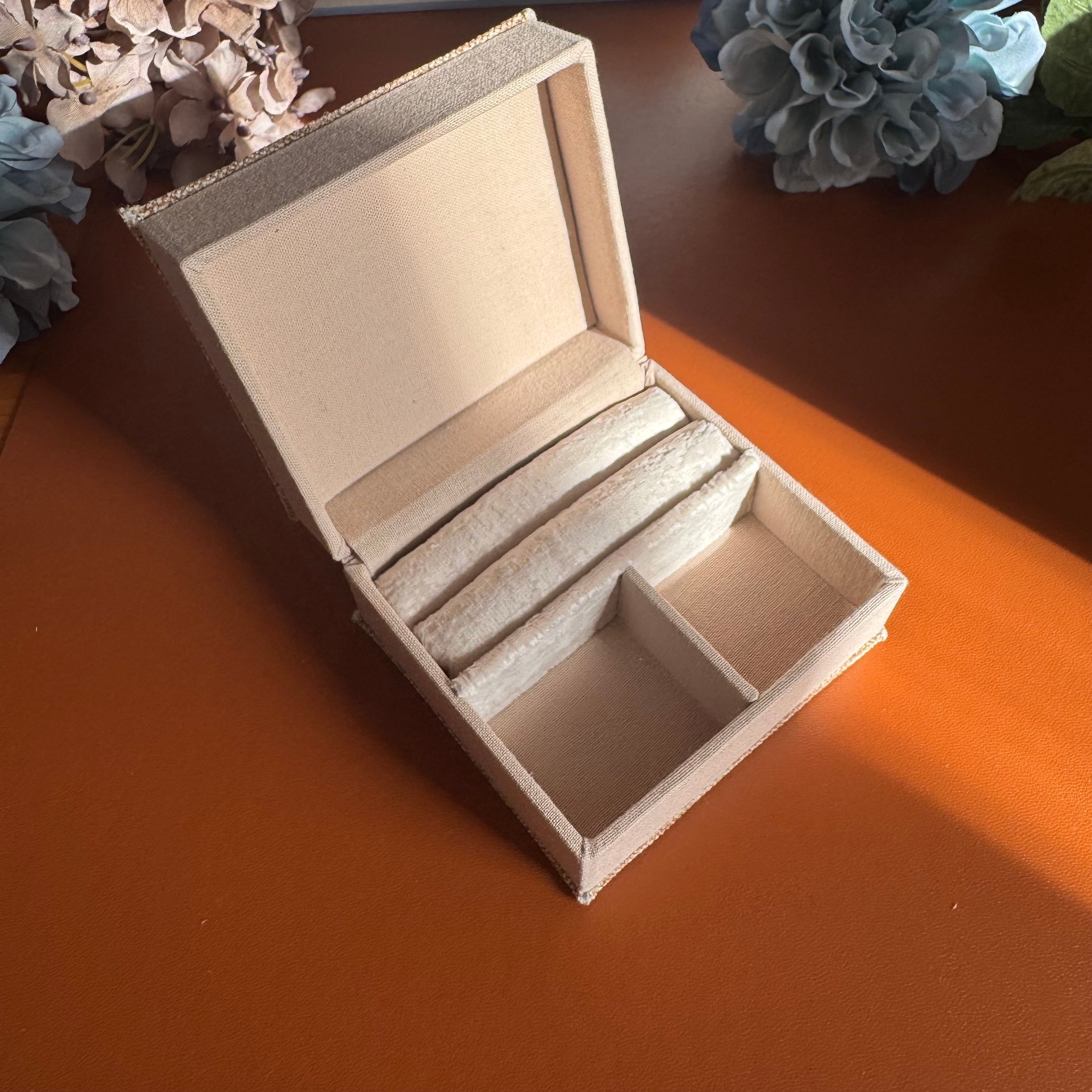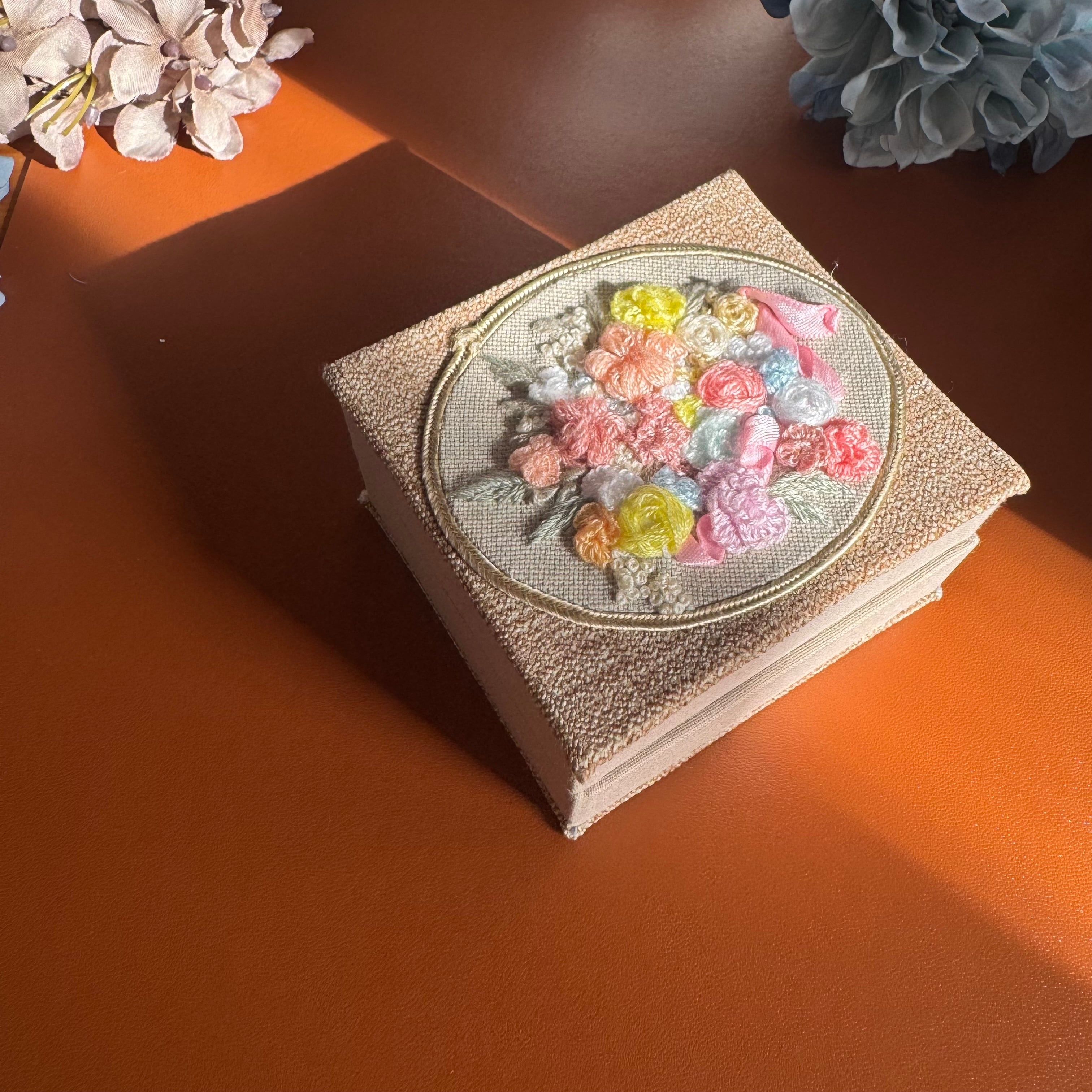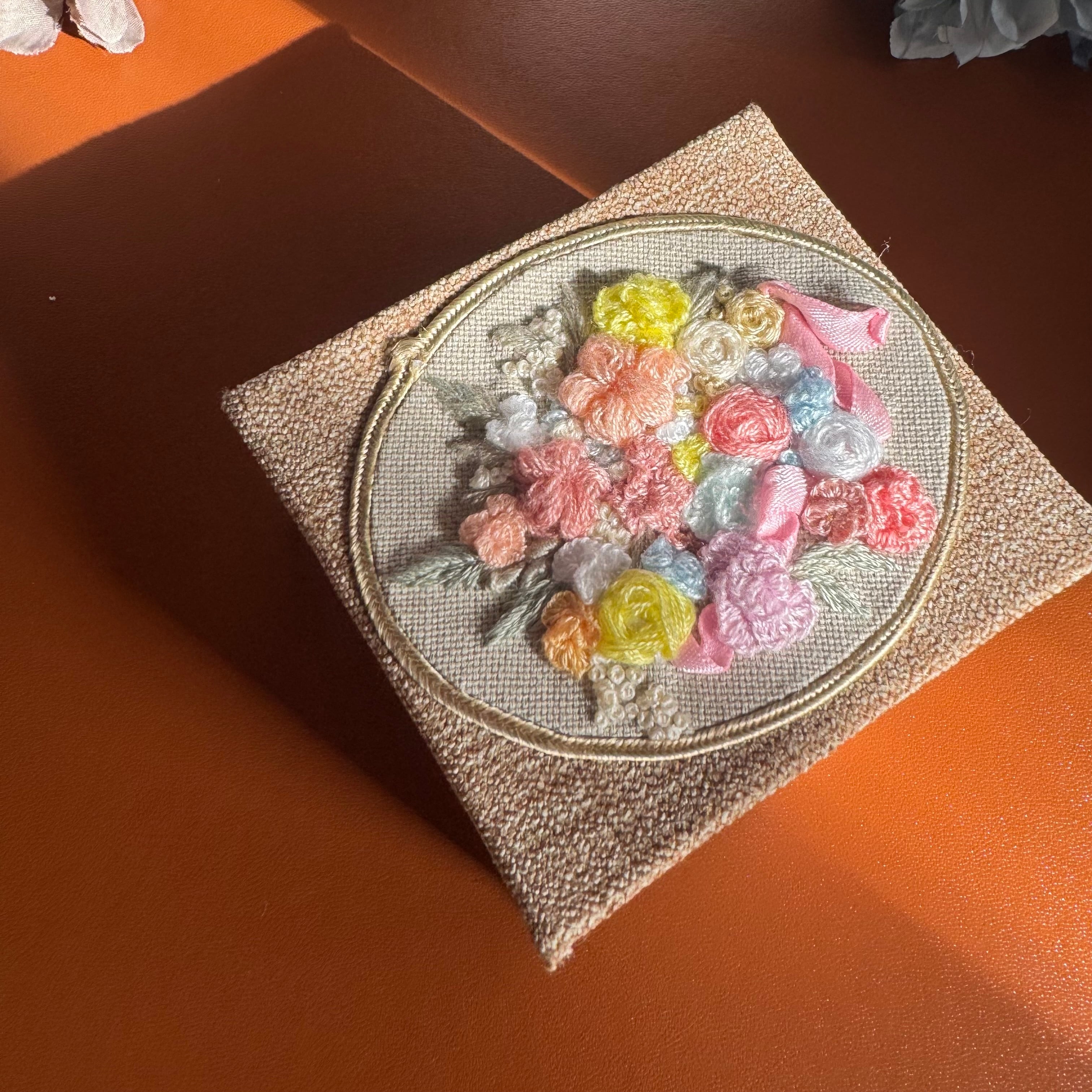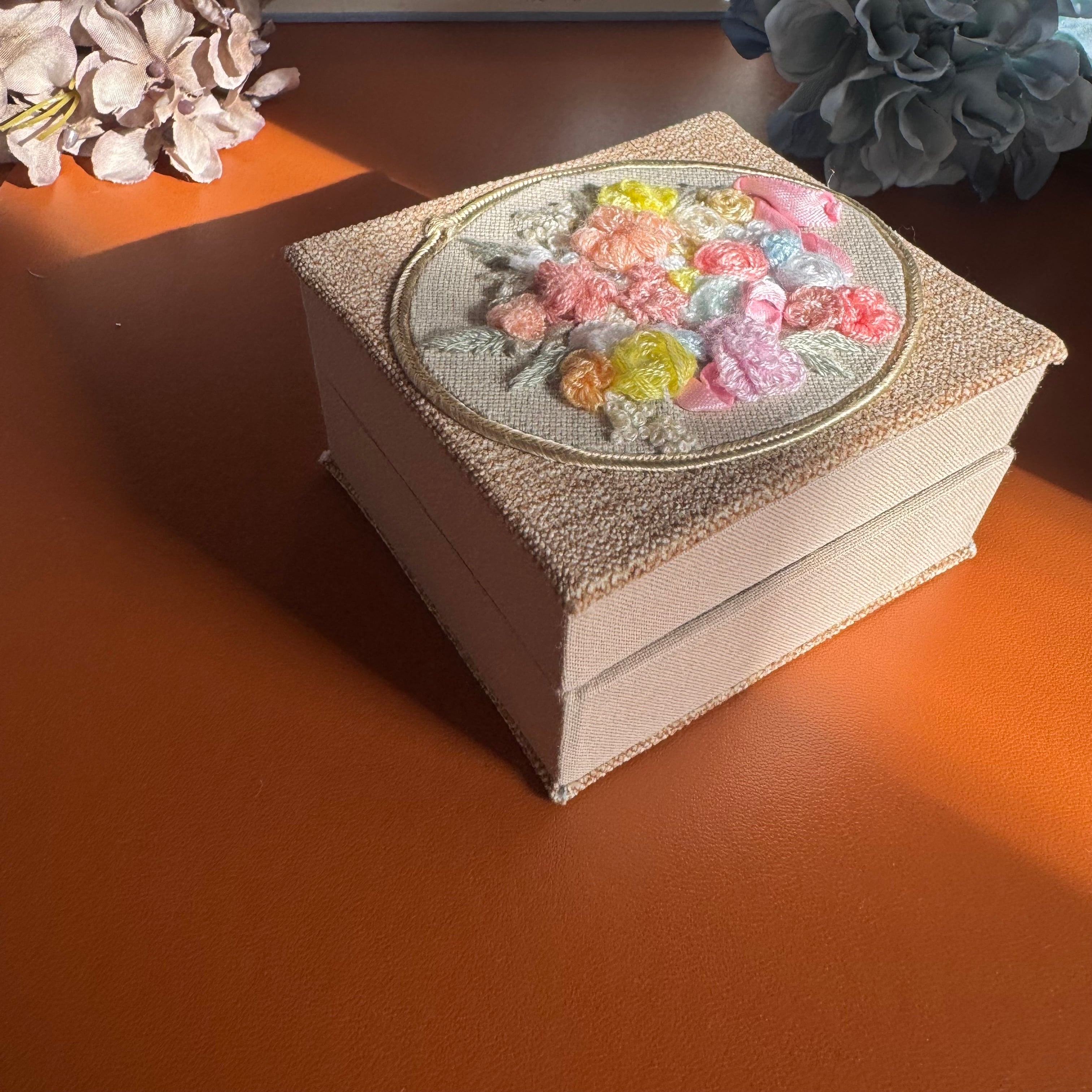 美しい刺繍が施されたアクセサリーケースは、唯一無二のデザインが魅力です。鮮やかな色合いと繊細な刺繍が、大切なジュエリーを華やかに彩ります。このケースは、他にはない特別なアイテムとして、贈り物や自分へのご褒美にぴったりです。